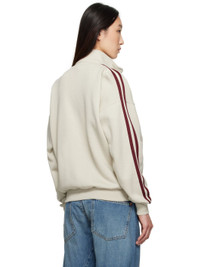 Cotton- and wool-blend fleece sweatshirt. · Stand collar · Zip closure · Zip pockets at front · Rib-knit hem and cuffs · Dropped shoulders · Stripes at sleeves Supplier color: Putty 92% cotton, 8% wool. Made in Portugal 252446F097014