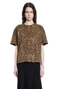 DESCRIPTION - Beige - Seamed leopard print - Round neck - Front and back mirrored seams - Dropped shoulder - Short sleeves - Slightly loose boxy fit - Front and back vertical seams that mirror each other in a curved shape DETAILS - Made in: Peru - Composition: 95% Cotton 5% Polyester - Model code: NT684 - Item ID: 9517197689174 SIZE & FIT Model wears size S Model Height 181 cm Bust 83 cm Waist 57 cm Hips 88 cm