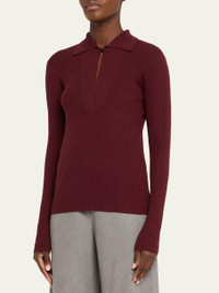 Single-Button Merino Wool Polo Shirt