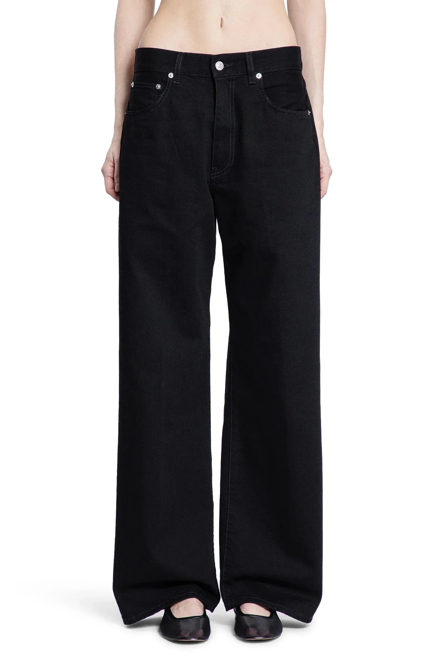 DESCRIPTION - Stay black - Denim - Relaxed waistband - Belt holes - Button closure - 5 pockets - Straight leg - Relaxed fit - Floor length DETAILS - Made in: Italy - Composition: 100% Cotton - Model code: NP239SB BLACK - Item ID: 9517198311766 SIZE & FIT Model wears size 28 Model Height 181 cm Bust 83 cm Waist 57 cm Hips 88 cm