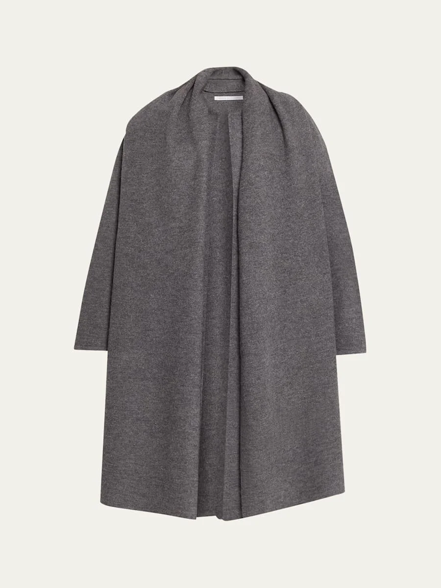 6397 cloak coat featuring a draped silhouette Shawl collar; open front Long sleeves Side slits Hem falls below the knee Oversized fit Merino wool Unlined Hand wash or dry clean Imported This product contains perfluoroalkyl and polyfluoroalkyl substances (PFAS). For more information, please visit the manufacturer’s website. Online Inquiries: BGS21_T8SES| Store Inquiries: #5405297