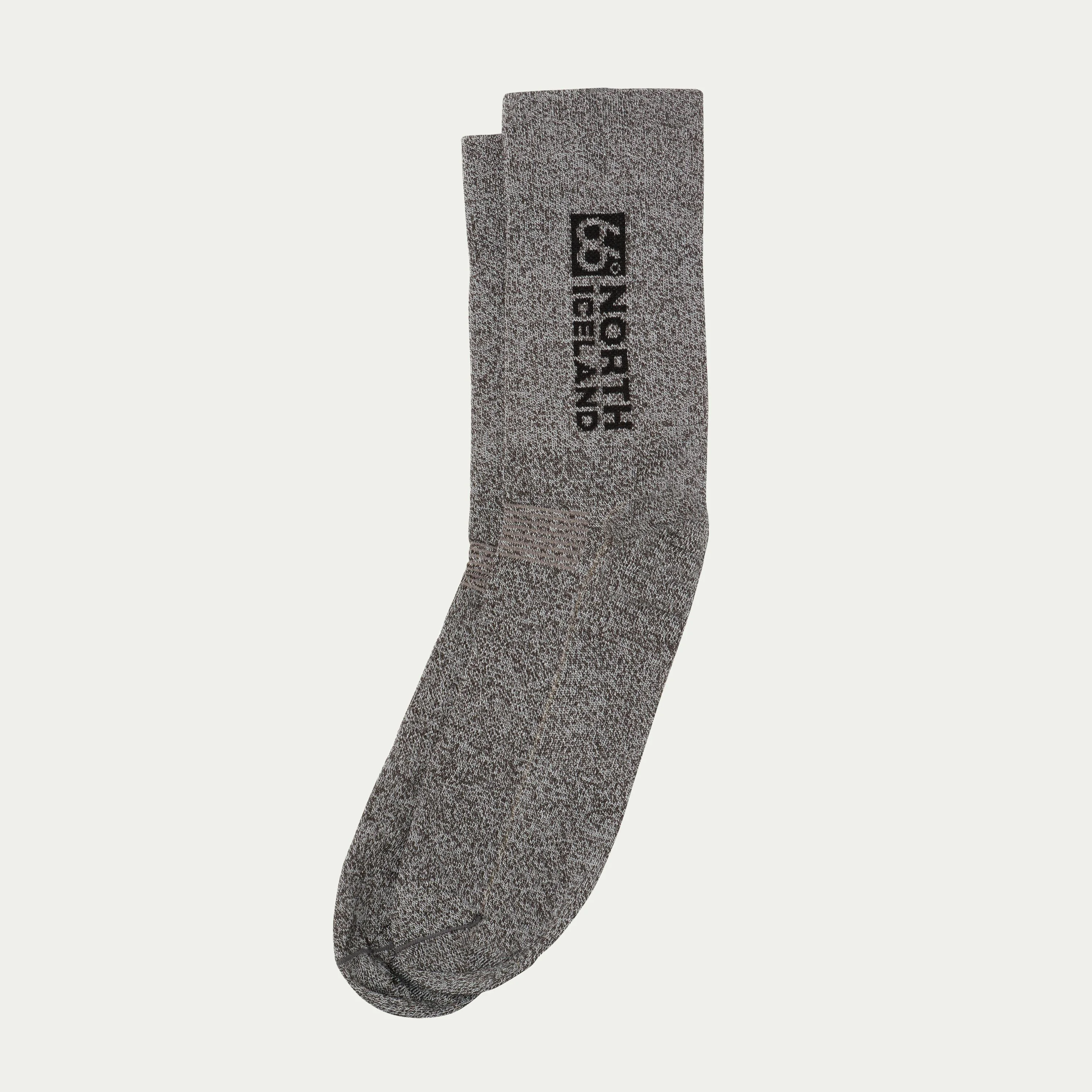 Socks with 66°North Iceland logo, made in organic cotton and recycled polyester. S= 35-37 M= 38-40 L= 41-43 XL= 44-46 DETAILS AND CARE Repairs for life. Outer Layer - Main fabric 70% Organic cotton, 30% PES recycled Style Belts & socks