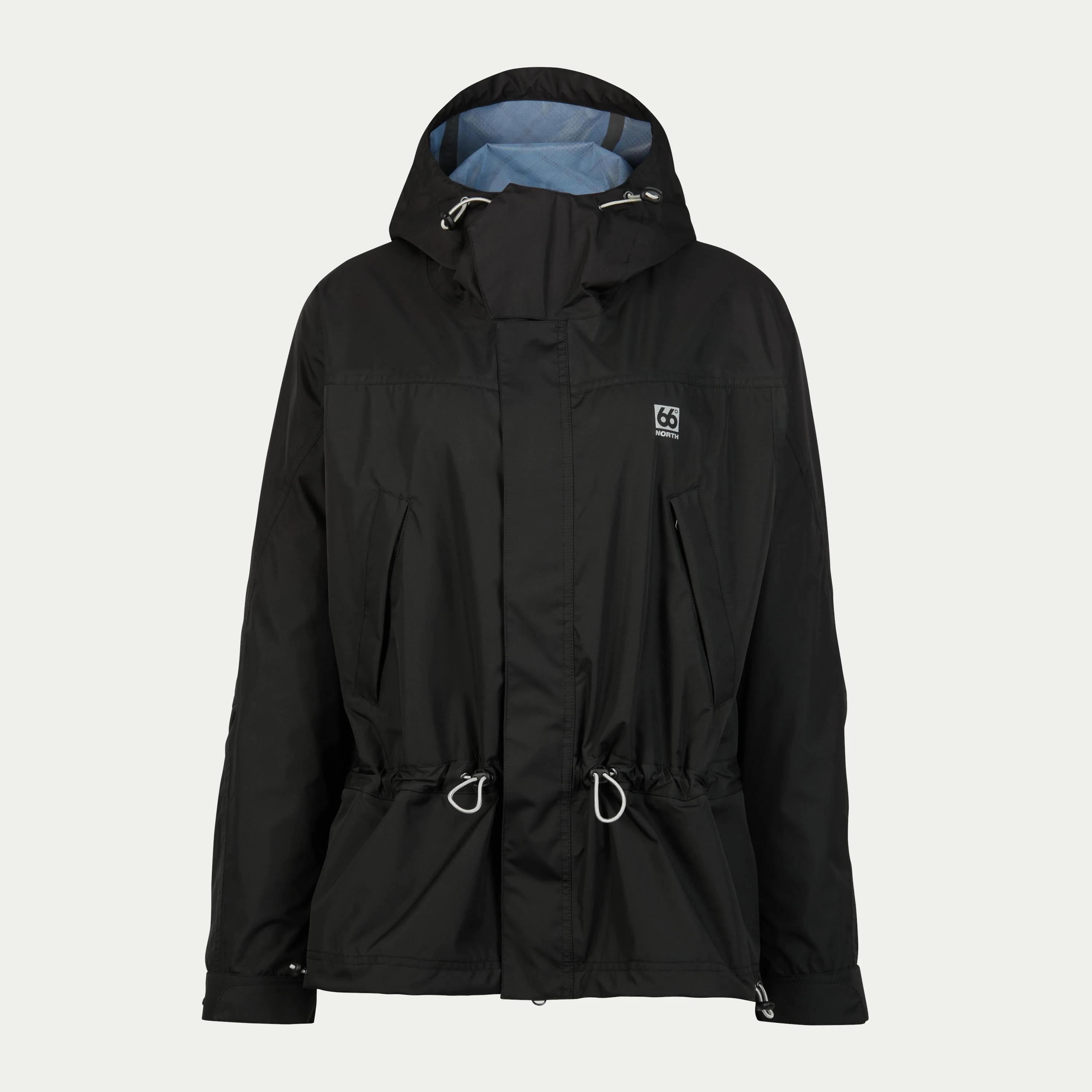 Three-layer jacket Description & Fit Garðar is a lightweight and versatile jacket. The jacket is a bridge between urban commuting and a causal exercise or activity jacket. Oversized fit, three-layer material that is water resistant up to 9,000 mm/24 hrs, adjustment cord at the waist and hem, two front pockets, and two adjustment cords in the hood. Perfect for everyday commuting and unpredictable weather days with chances of light rain. The jacket is true to size, but we recommend those between sizes to size up.