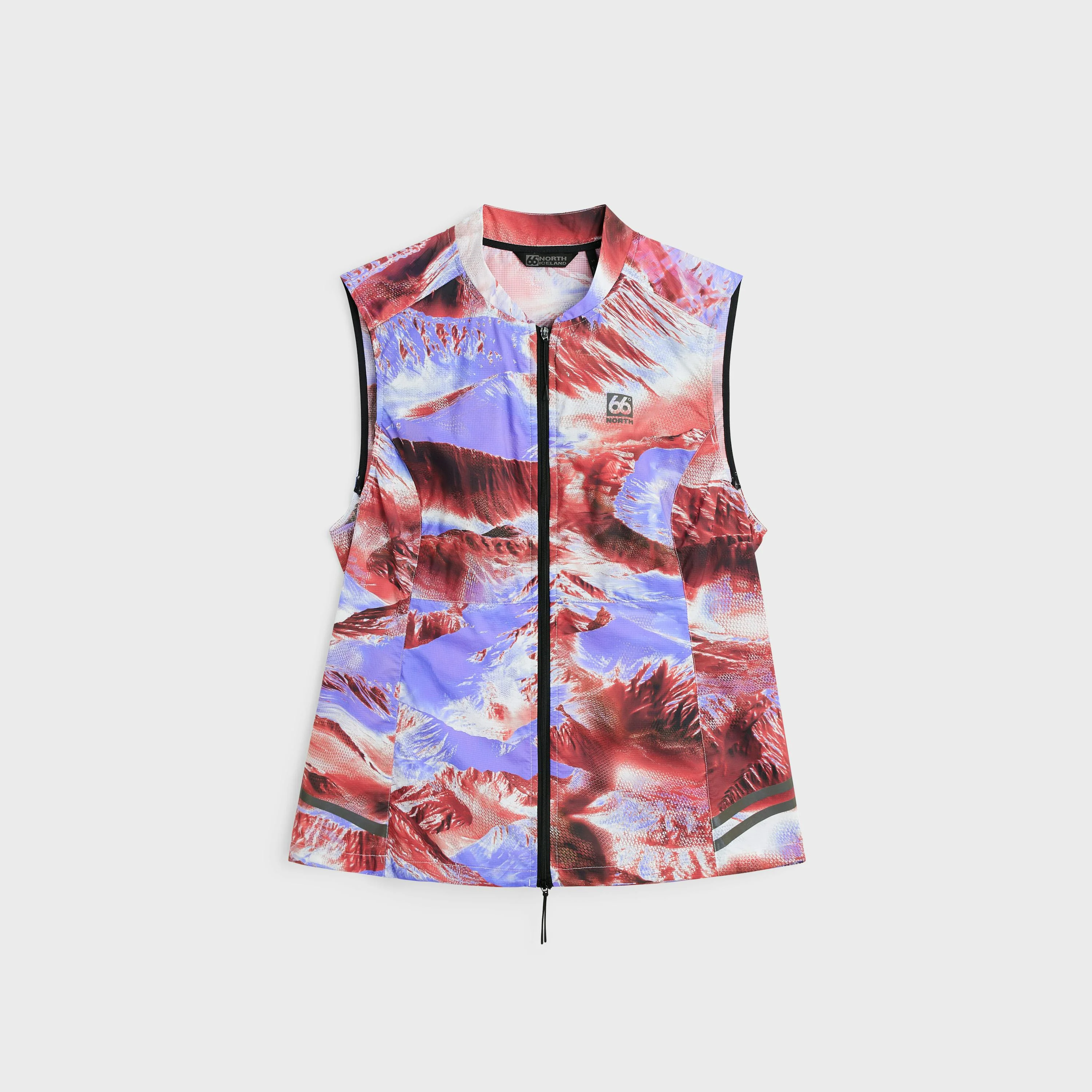 Developed in close collaboration with outdoor enthusiast and photographer Rory Griffin, as well as top Icelandic runners who tested the gear in diverse conditions, the Helgafell collection is designed to perform in environments where the weather is anything but predictable. Helgafell is an ultra-light windbreaker vest built for high-performance trail runs and shifting conditions. Made from durable, highly breathable woven ripstop fabric, it resists abrasion and wear, ensuring long-lasting performance at the lightest weight. Designed to be versatile and functional, it has light and comfortable insulation at the chest only. A PFAS-free water-repellent finish helps shed light rain and speeds up drying time, while added odor control treatment keeps the vest fresh. The fabric also offers UV 50+ sun protection. Roomy, articulated fit for freedom of movement with an adjustable hem, with a super-light elastic cord and stopper, that covers you from wind, drops of rain, and the sun. The lightweight, smooth two-way front zipper includes easy-grip pullers, and a zippered, reversible security pocket at the back with a keychain hook that doubles as a stow-away pouch when not in use. Reflective logos and stripes for enhanced visibility. Weight (size M): 115 g DETAILS AND CARE Repairs for life. Outer Layer - Main fabric 52% Nylon 6.6, 48% Recycled Nylon 6.6 FD Ripstop | bluesign® Suitable for Running Cycling Hiking Golf Mountaineering Functionality Wind-protection Breathable Water-resistant Country of Origin China Style Vests