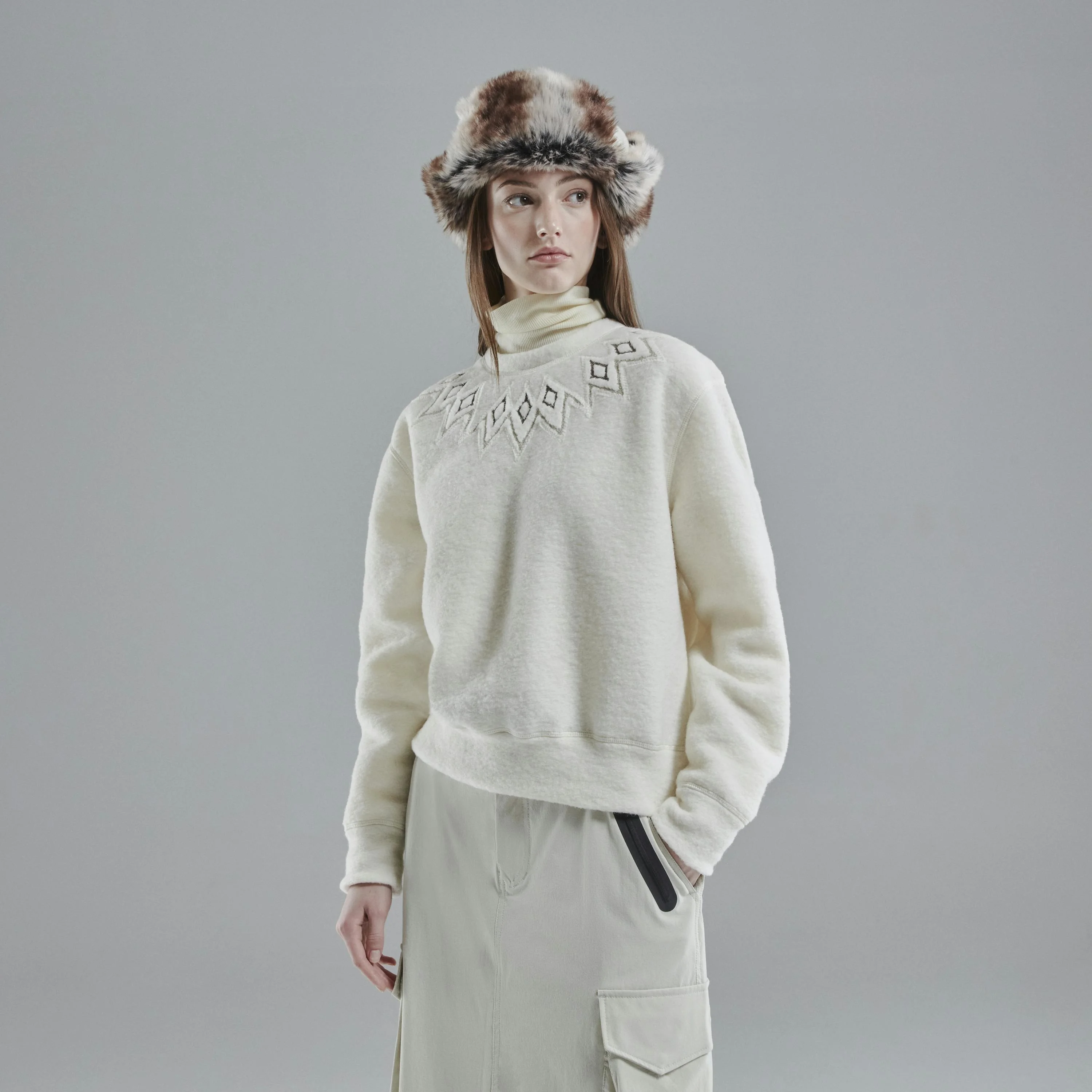Kaldi crewneck is a new option in our popular Kaldi collection, a fusion of classic style and rugged warmth. Crafted in a comfortable regular fit with premium wool, this sweater stands out with distinctive Kaldi embroidery around the neckline, which draws inspiration from Icelandic traditional sweater pattern, and a logo on the back. In Icelandic, "Kaldi" translates to "cold" in English, emphasizing the garment's ability to provide warmth and comfort in cold or chilly weather. Female model is 175 cm / 5' 8" tall and wearing size M DETAILS AND CARE Repairs for life. Inner Layer - Main fabric 75% Wool, 25% Polyester Shell Wool Style Knitwear & Wool