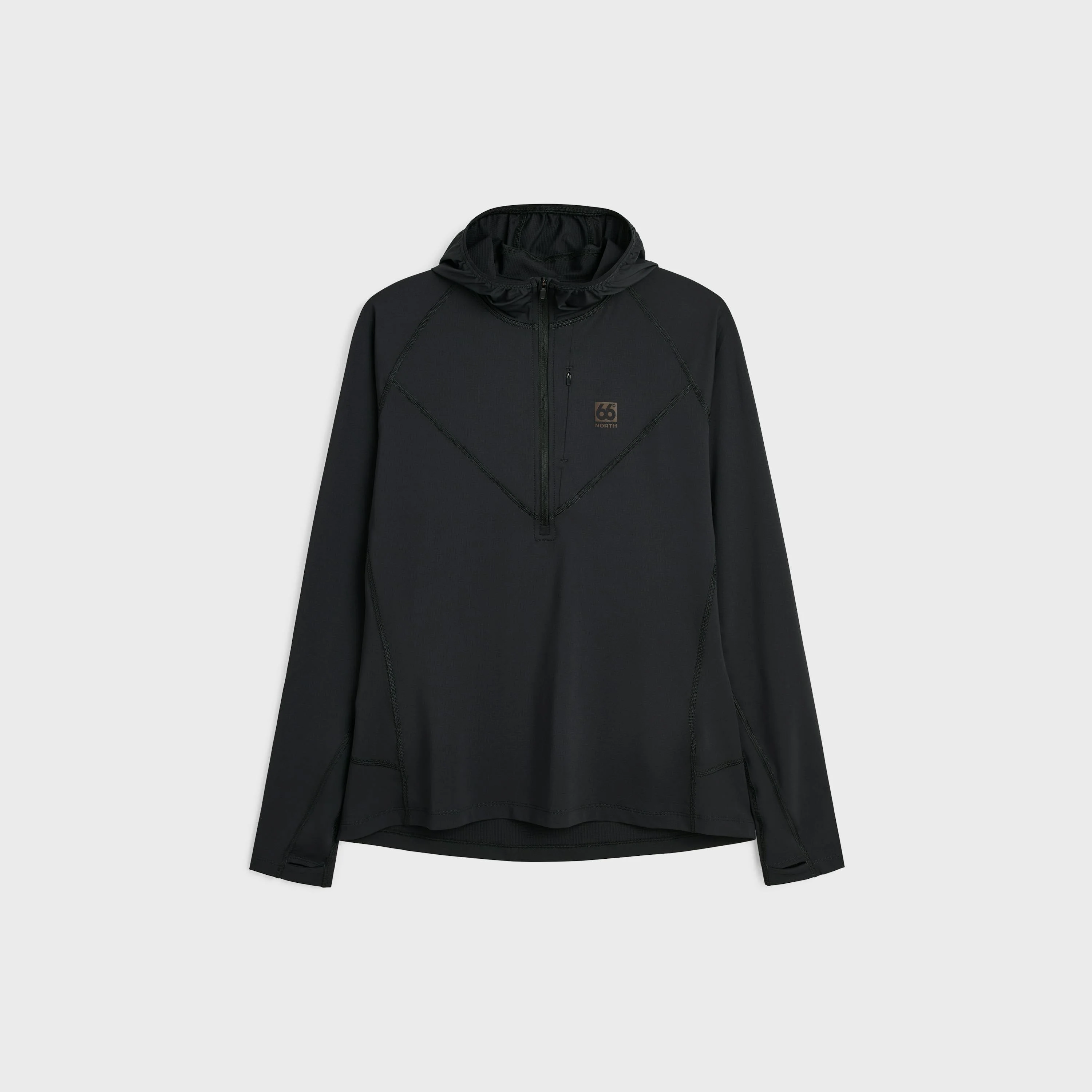 Chris Burkard, an award-winning photographer and our brand ambassador, has spent years pushing the limits in Iceland’s ever-changing conditions. Now, he’s helped us design a capsule of clothing built to withstand them. Designed for high-output sports like mountain biking, hiking, and running, the Ljosufjoll Hoodie is the epitome of performance and comfort. Made from a durable double-knit fabric of 89% recycled polyester and 11% spandex, it offers high abrasion resistance and a UPF rating of +50 for reliable protection against the elements. The hoodie features long sleeves with discreet thumbholes for a secure fit, a small chest pocket for convenience, and YKK zippers. Its wicking finish ensures comfort by keeping moisture away from the skin, even during high-intensity workouts. DETAILS AND CARE Repairs for life. Outer Layer - Main fabric 89% Recycled polyester, 11% Elastane Suitable for Running Cycling Hiking Functionality Half-zip Layering Base Style Base-Layer