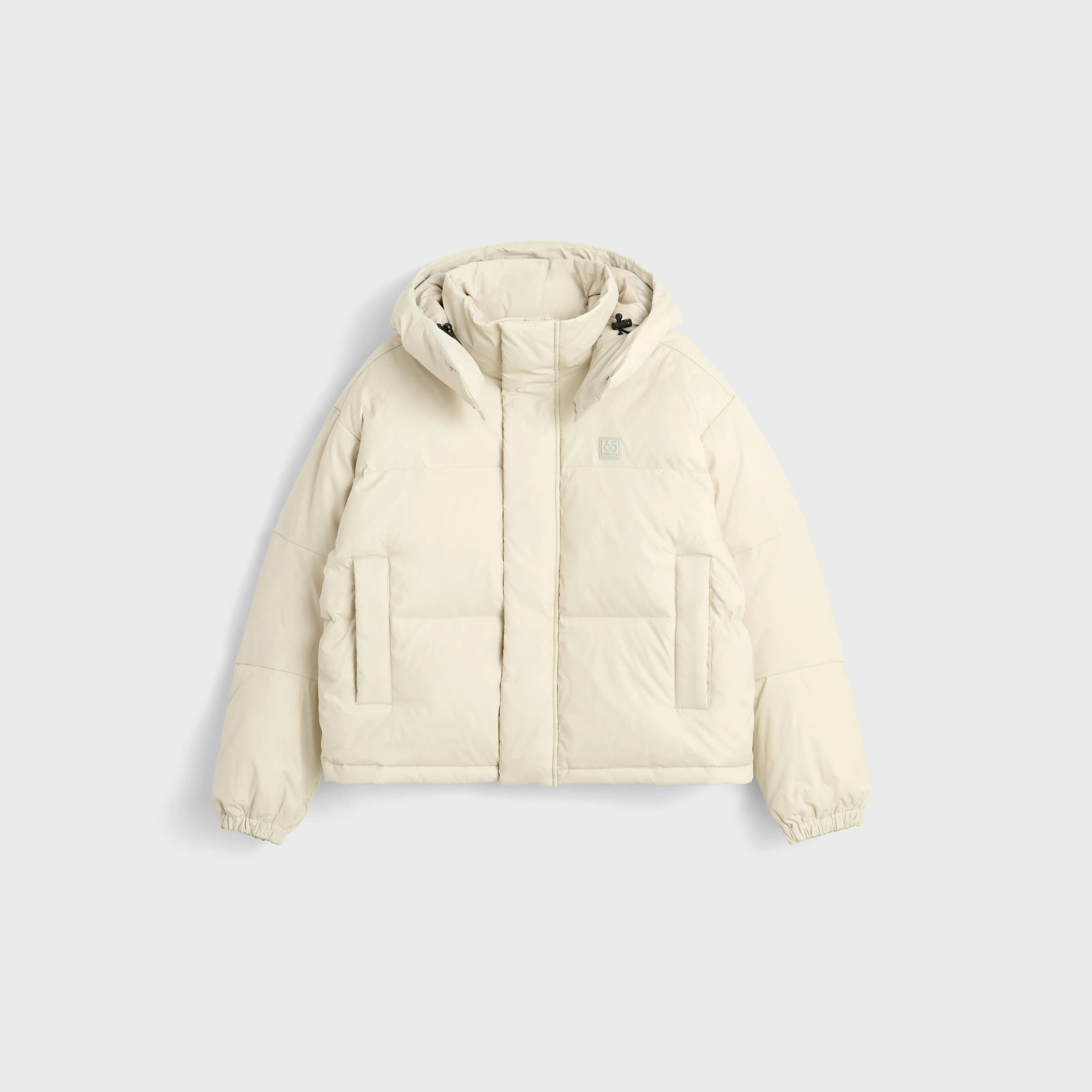 Puffy and incredibly warm cropped jacket filled with high-quality recycled down. This version has horizontal quilting and is PFAS-free. Description & Fit Dyngja down cropped jacket is puffy and incredibly warm. With horizontal quilting, the jacket is insulated with high-quality 700 fill-power recycled down, while the outer layer is made of recycled polyester. This version is made from PFAS-free fabric. Our Dyngja collection is based on a bestselling down coat from the early 2000s, designed equally with city life and outdoor winter adventures in mind. The jacket is incredibly warm and features a high down-filled collar and a draw-cord hood for shelter. Depending on your style or climate preferences, the hood can be zipped on or off. A snapped downwind flap prevents the wind from blowing through the zipper. The jacket also includes two zippered front pockets, one inside pocket, and a drawstring at the waist to adjust the fit. To secure the hood on the jacket so the zipper does not open, the pull tab needs to be laid flat against the zipper teeth, following the zipper's path. Ensure that the pull tab does not stick out beyond the hood. The recycled down is reclaimed from used clothing and bedding, diverting waste from landfills and extending the lifecycle of the natural filling. The cleaning, sterilizing, and processing methods used for recycled down are nearly identical to those employed for virgin down, resulting in a final product with first-rate standards in cleanliness and performance. Dyngja ensures protection from the cold and keeps you comfortable throughout your everyday commute. Materials & Care Main fabric Garment - Insulation 80% Recycled down (goose and duck mix), 20% Feather Garment - Lining 100% Recycled polyester Garment - Main fabric 100% Recycled polyamide