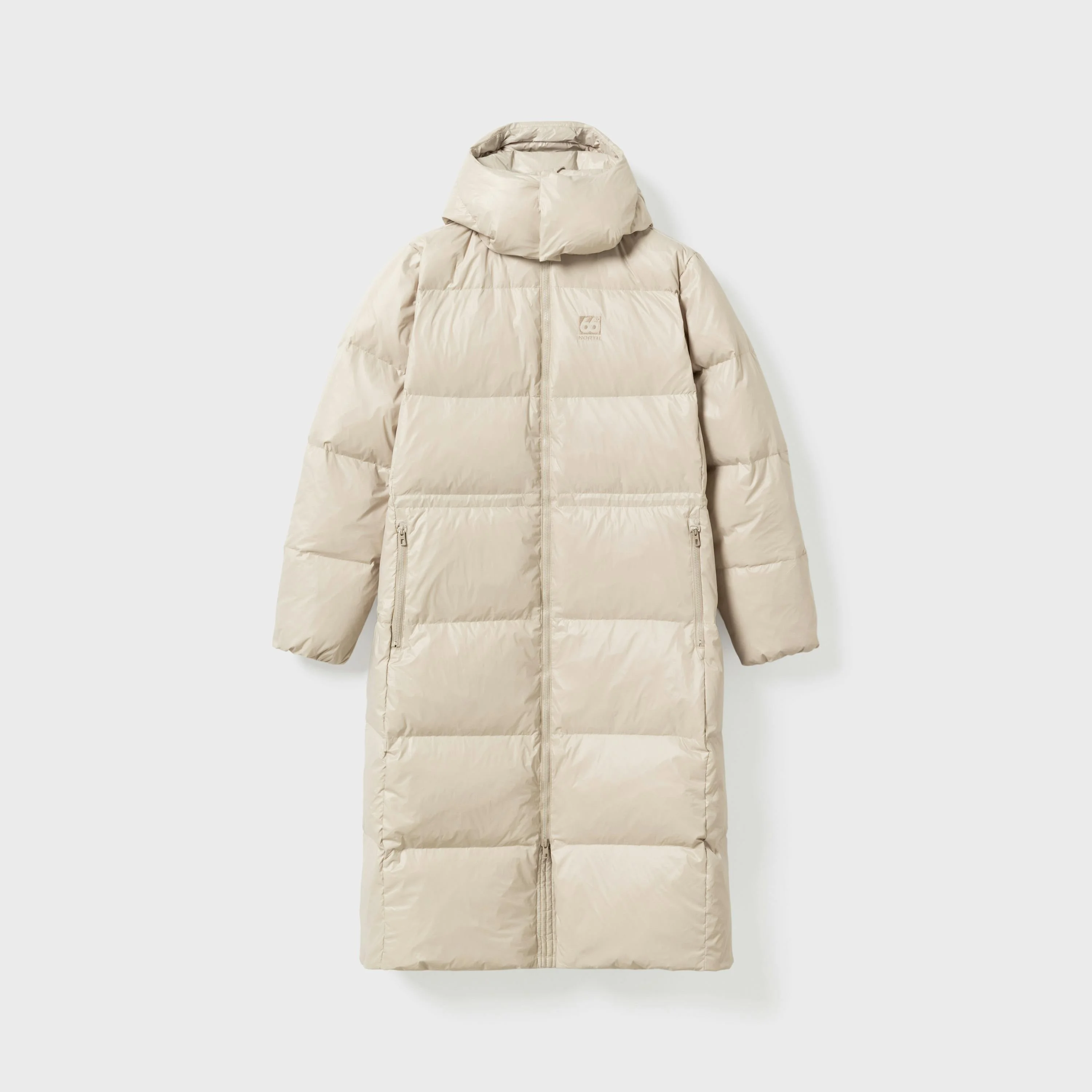 Lightweight and warm puffer down coat, insulated with 80% recycled down. Description & Fit Eldey Down Coat is a lightweight and warm puffer coat, insulated with 80% recycled down. The coat features tonal zipped side pockets, a center front zip, and a detachable hood for adaptable styling. A zipped slit at the hem improves movement, and an adjustable drawstring at the waist allows for a customizable fit. The coat has sleeve hems with elastic inside and an embroidered logo on the sleeve. This light, versatile down coat is ideal for city-living in colder climates. Materials & Care Main fabric Garment - Insulation 80% Recycled down (goose and duck mix), 20% Feather Garment - Lining 100% Recycled polyester Garment - Main fabric 100% Polyamide