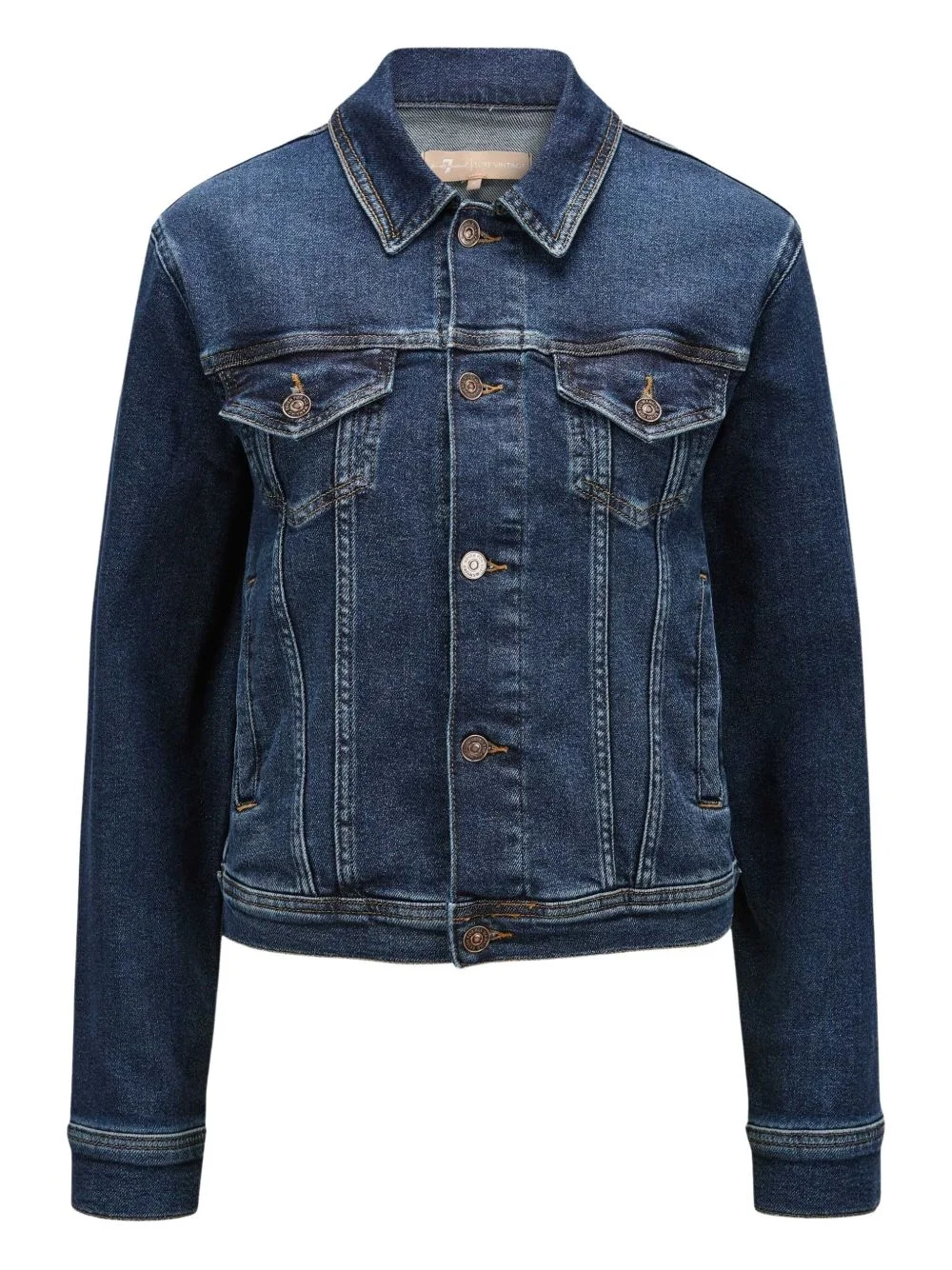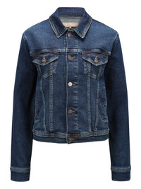 denim jacket Highlights - Dark blue - Front button fastening - Long sleeves - Buttoned cuffs - Chest flap pockets Imported Composition Cotton 95%, Lycra 5% Washing instructions Read Manufacturer Guidelines