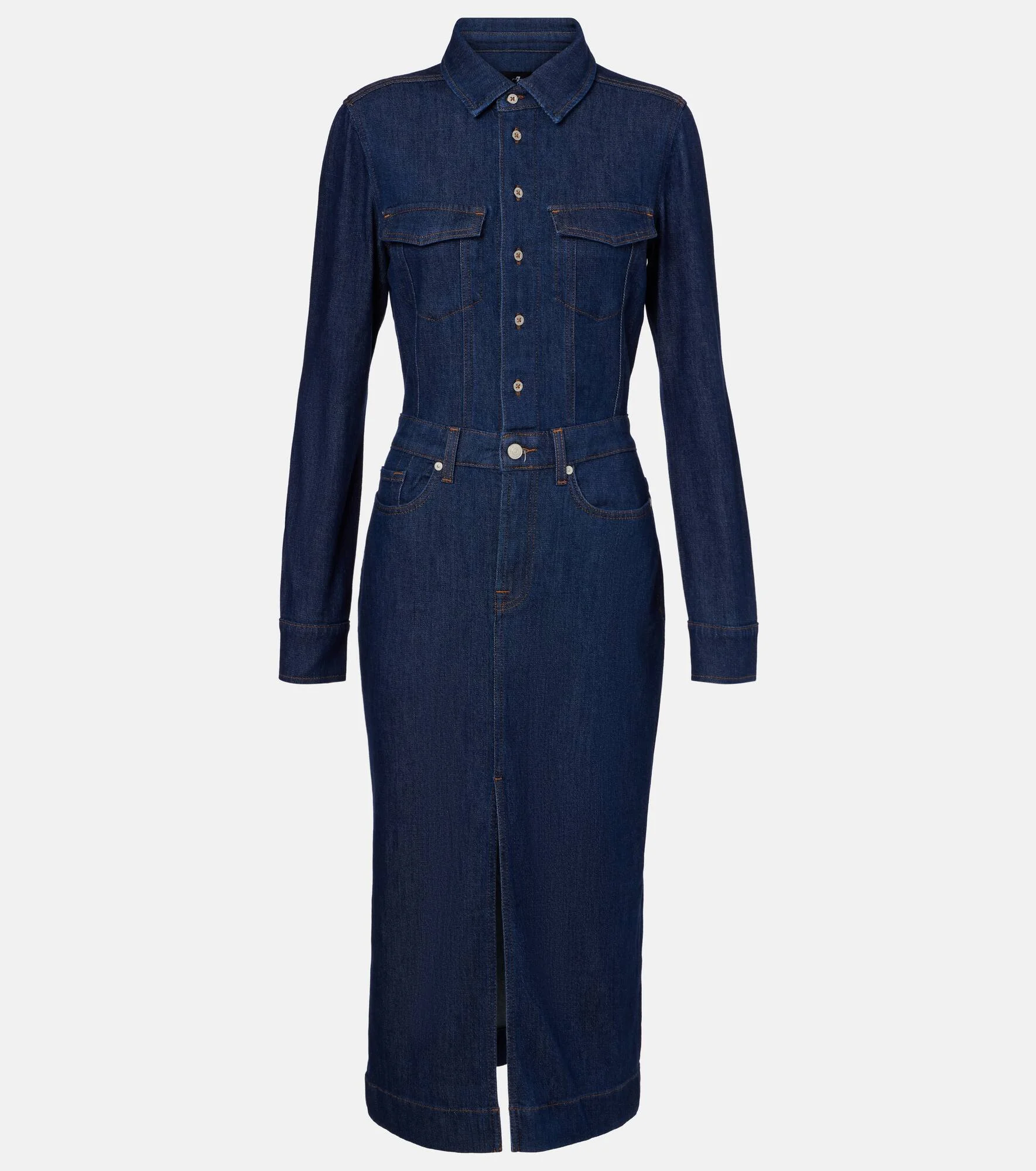 7 For All Mankind has been a favorite of denim devotees since the turn of the millennium. Made from lightweight denim, this versatile shirt dress is complete with a partially buttoned front, a pointed collar, and multiple pockets. Product Details - Material: 48% cotton, 48% modal, 3% polyester, 1% elastane - Care instructions: machine wash cold - Made in Egypt - Color: blue - Designer color name: Halona - Item color: blue - Item number: P01059341 Size & Fit - True to size - Cinched waist - Slightly stretchy fabric - The model seen in the picture is 178cm-5'10" and wearing a size XS