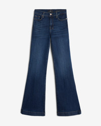 Fits like: Fitted through the hips and thighs. This mid-rise denim has a wide, full-length leg and a subtle flare for a long, lean silhouette. Feels like: A comfortable, authentic denim texture with a touch of stretch. The Details: - Dark blue wash - Subtle whiskering and fading along the thighs - Embroidered 7 back pockets in contrast red stitch MEASUREMENTS - Based on size 27 - Rise: 9.25" - Approx Inseam: 34.5" - Leg Opening: 21.75" - Measurements may vary based on size, fabric, and wash. FABRIC & CARE - 68% Cotton, 15% Polyester, 10% Lyocell, 5% ELASTERLL-P, 2% Elastane - Machine wash cold inside out with like colors, lay flat to dry - Imported
