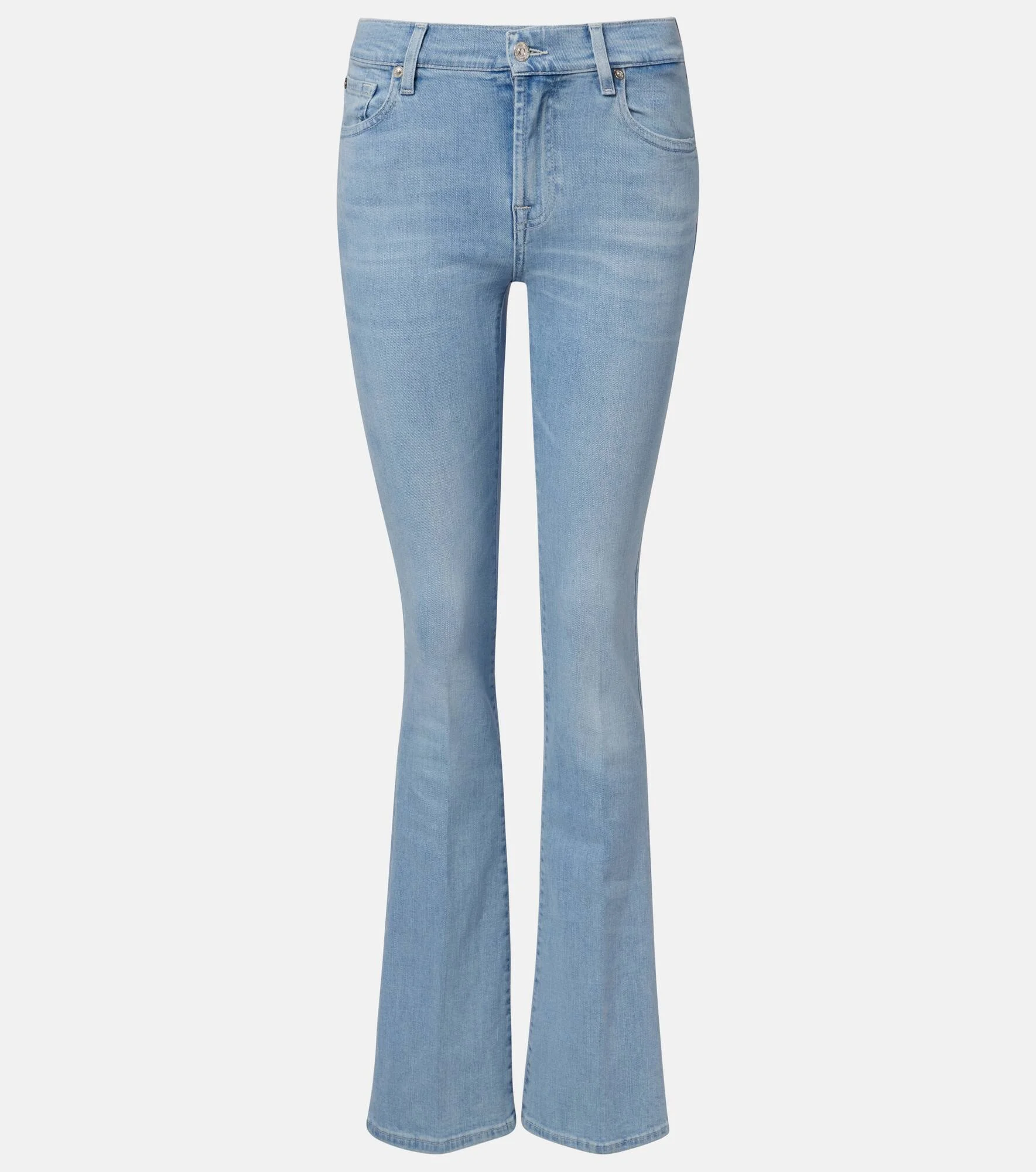 7 For All Mankind has been a favorite among denim devotees since the beginning of the new millennium. These bootcut jeans feature the brand's "7" logo tag at the back. Product Details - Material: 97% cotton, 3% elastane - Care instructions: machine wash at 30 degrees - Made in Tunisia - Color: blue - Designer color name: Indigo Bloom - Belt loops - Closure: zip and button fastening - Pockets: five pockets - Item number: P01146965 Size & Fit - Fits small to size - we recommend trying one size larger - Slightly stretchy fabric - Bootcut - Mid-rise - The model seen in the picture is 178cm-5'10" and wearing a size 27