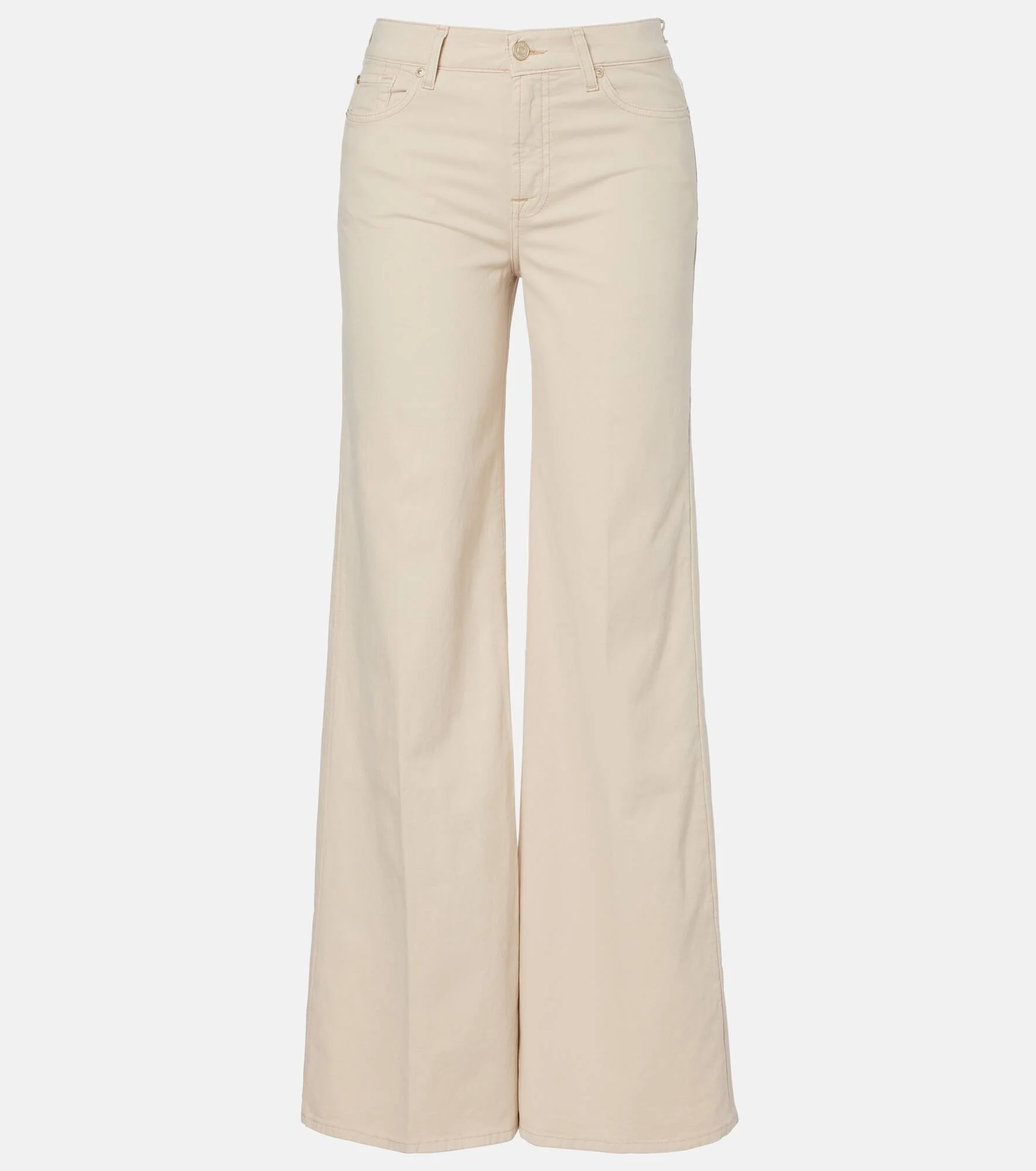 7 For All Mankind has been a favorite among denim devotees since the beginning of the new millennium. The Lotta jeans are cut to a wide-leg silhouette with a mid-rise waistline. Product Details - Material: 97% cotton, 3% elastane - Care instructions: machine wash cold - Made in Tunisia - Color: beige - Designer color name: Colored Comfort Twill Clay - Belt loops - Pockets: five pockets - Closure: zipper fly, button fastening - Item number: P01146990 Size & Fit - Fits small to size - we recommend trying one size larger - Slightly stretchy fabric - Wide-leg - Mid-rise - The model seen in the picture is 178cm-5'10" and wearing a size 27
