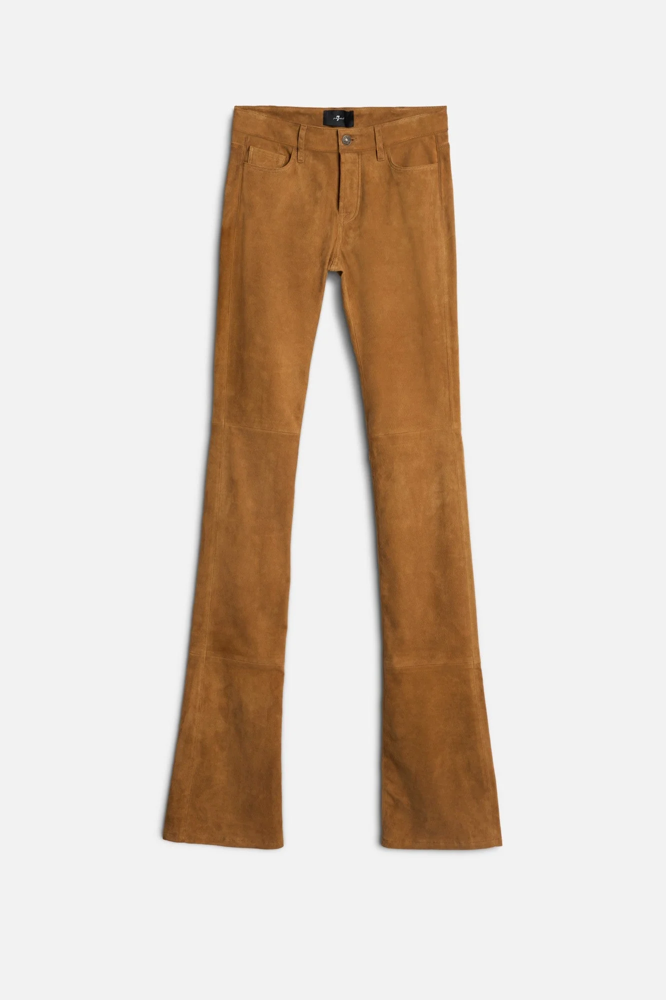 Fits like:A low-rise skinny bootcut that hugs from hip to knee, then subtly kicks out at the hem. Designed with a contoured waistband for a sleek, sculpted fit. Feels like:Thick, durable structure with a soft, velvety texture made out of 100% Italian suede leather. The Details: - Brown - Zip fly with button closure - Clean back pocket - Clean hem finish