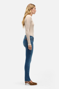 Fits like: A low rise skinny jean that hugs from hip to ankle with a sleek, form-fitting silhouette and a contoured waistband for a flattering hold. Feels like: Sculpting stretch denim that smooths and shapes for a flattering fit. Soft, supportive denim that hugs in all the right places - designed to slim and define. The Details: - Medium wash - Zip fly with button closure - Clean back pocket - Signature waistband tab and back pocket flag - Whiskering and fading along the thighs