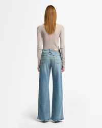 Fits like: A high-rise relaxed denim. Featuring a full-length leg. Feels like: A classic and authentic denim feel with subtle stretch to it. The Details: - Light blue wash - Zip fly with button closure - Back pocket signature embroidered squiggle - Subtle whiskering and fading across the thighs MEASUREMENTS - Based on size 27 - Rise: 10.75" - Approx Inseam: 34" - Leg Opening: 24.25" - Measurements may vary based on size, fabric, and wash. FABRIC & CARE - 79% Cotton, 14% Lyocell, 5% Elastomultiester, 2% Elastane - Machine wash cold inside out with like colors, lay flat to dry - Imported