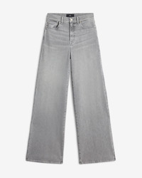Fits like: A high rise fit that contours the waist and hips before falling into an easy, full-length wide leg. Feels like: Luxe, lived-in comfort — medium-weight denim with a cozy softness and just enough stretch. The Details: - Grey Wash - Zip fly with button closure - Clean back pocket - Tonal stiching - Subtle whiskering and fading along the hips and legs MEASUREMENTS - Based on size: 27 - Rise: 10.75" - Leg Opening: 24.25" - Approx. Inseam: 34" - Measurements may vary based on size, fabric, and wash. FABRIC & CARE - 80% Cotton, 15% Lyocell, 3% Elastomultiester, 2% Elastane - Machine wash cold inside out with like colors, lay flat to dry - Imported