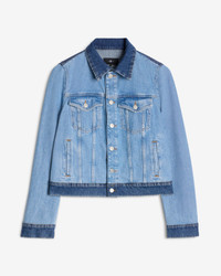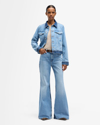 Fits like: A classic, slightly fitted trucker jacket with a structured silhouette that hits at the waist for a timeless, flattering look. Feels like: A grounded, structured denim that develops softness and character with every wear. The Details: - Light wash - Zip fly with button closure - Flap chest pockets with pointed seams - Contrast collar, yoke, and waistband for tonal dimension - Adjustable side tabs for a cinched fit - Cropped, tailored silhouette FABRIC & CARE - 99% Cotton, 1% Elastane - Machine wash cold inside out with like colors, lay flat to dry - Imported