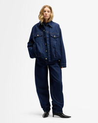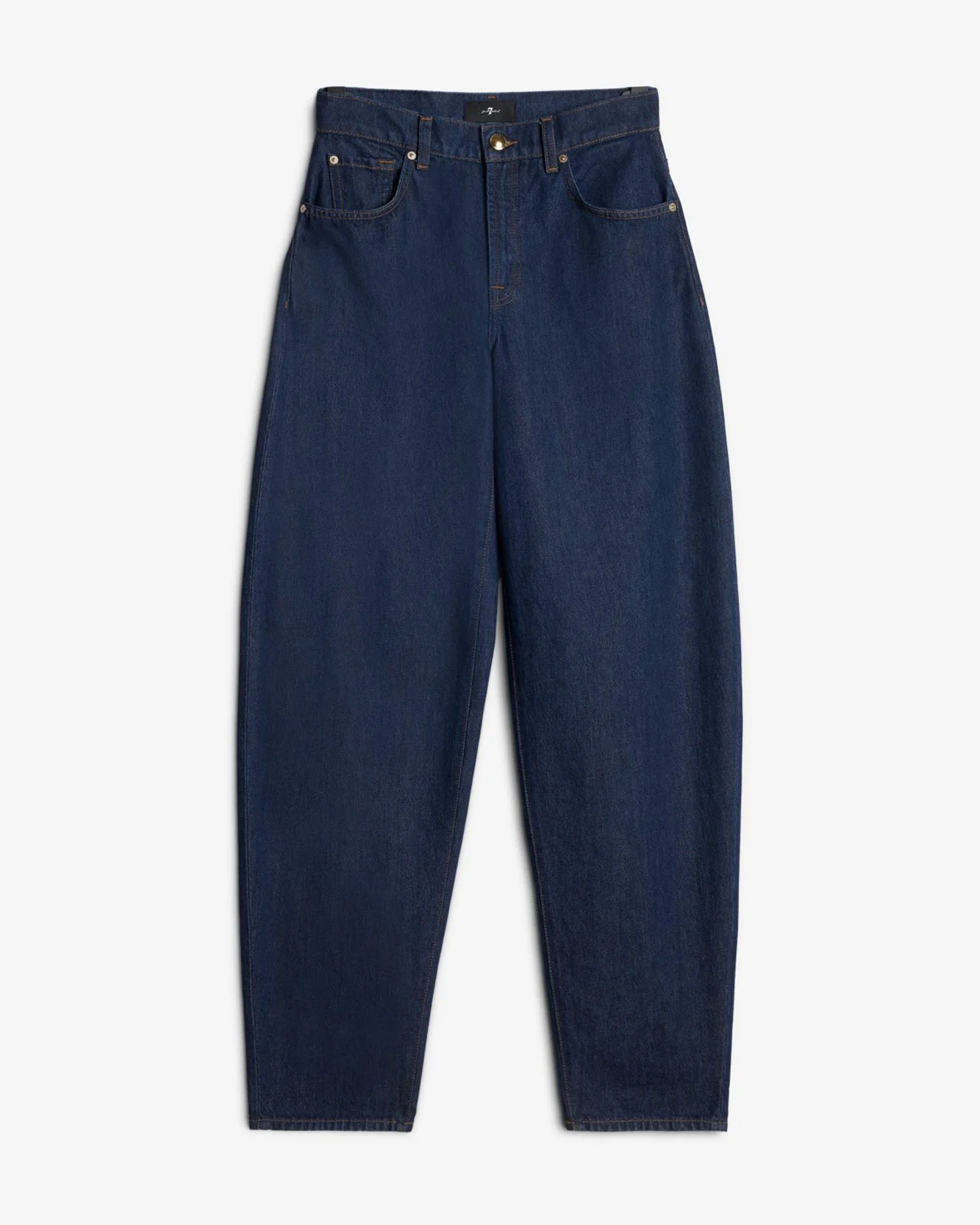 Fits like: A curved barrel leg with roomy thighs and tapering at the ankle, this mid-rise jean hits lower on the hips for effortless ease. Feels like: A grounded, structured denim that develops softness and character with every wear. The Details: - Dark wash - Zip fly with button closure - Extended inseam designed to stack over shoes - Clean back pocket - Contrast stitching FABRIC & CARE - 100% Cotton - Machine wash cold inside out with like colors, lay flat to dry - Imported