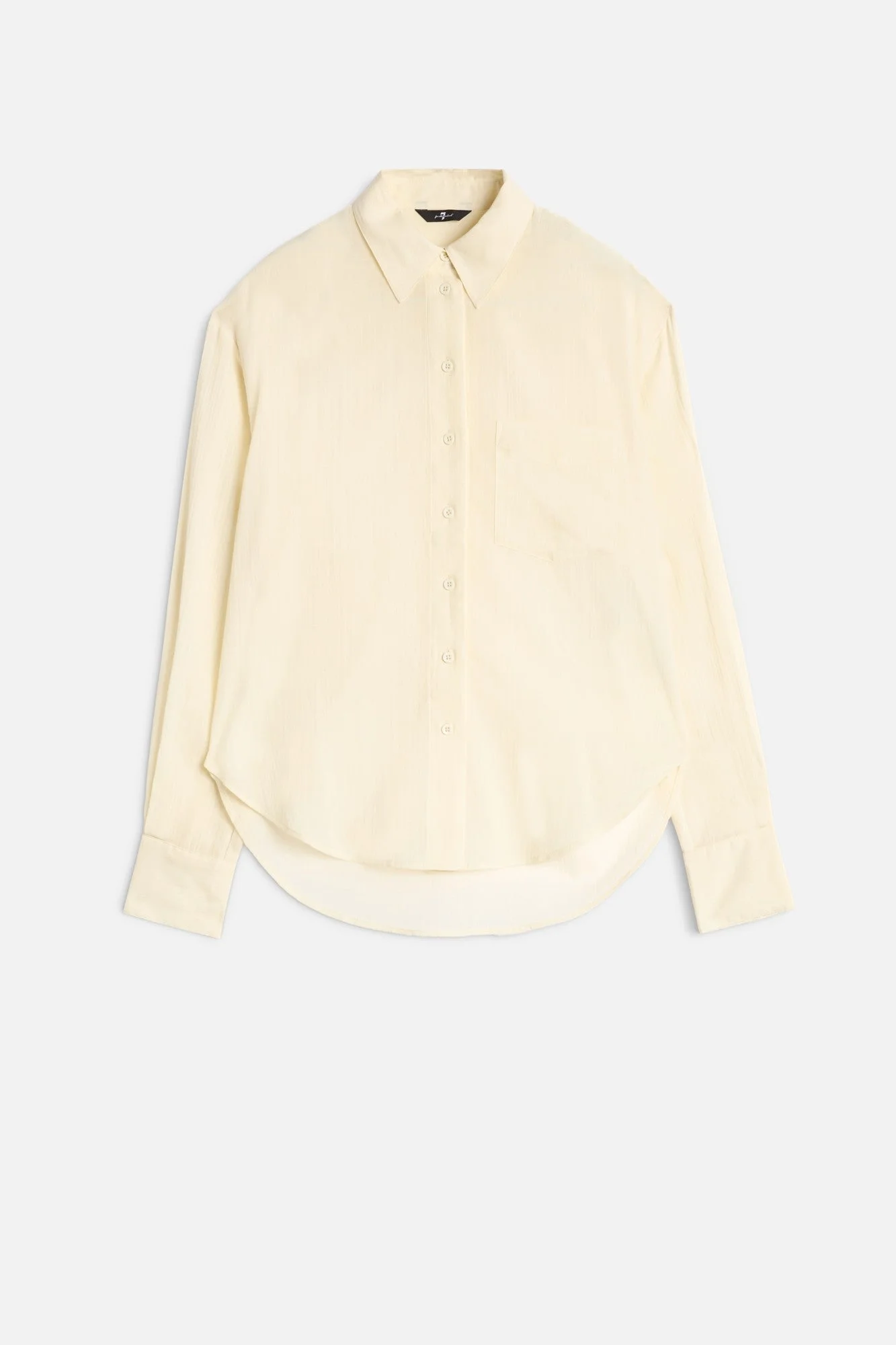 Fits like: An oversized button-down shirt with a relaxed silhouette and dropped shoulders for a laid-back yet refined look. Feels like: Lightweight and breathable, crafted from slightly sheer voile fabric for a soft, airy feel with a delicate drape. The Details: - Ivory shade - Pointed collar and button-front closure - Long sleeves with buttoned cuffs - Curved hem for versatile styling FABRIC & CARE - 100% Cotton - Machine wash cold inside out with like colors, lay flat to dry - Imported