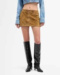 Fits like: Ultra-short miniskirt. Feels like: Luxurious 100% suede leather with a thick, durable structure and a soft, velvety texture. The Details: - Rich golden tobacco - 100% Leather - Zip fly with button closure - Clean back pocket FABRIC & CARE - 100% Leather - Professional Leather Cleaning - Imported