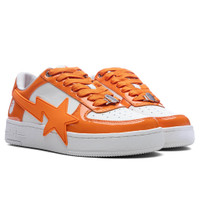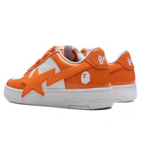 The Women's Bape STA OS #3 in Orange reimagines a classic silhouette with bold details. Featuring a leather upper with patent leather overlays, the design showcases an exaggerated STA logo for a standout look. A perforated toe box adds breathability, while the branded dubrae and embroidered heel provide signature finishing touches. - Leather upper - Patent leather overlays - Exaggerated STA - Perforated toe box - Branded dubrae - Embroidered heal - Style No: 001FWK702310L-ORG