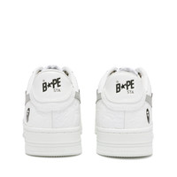 PRODUCT INFORMATION MODEL NO: 0ZXSHW291052LWHE RELEASE DATE: 2024-10-17 SERIES: Bape Sta NICKNAME: White Silver THICKNESS: Regular Sole UPPER MATERIAL: Leather CLOSURE: Lacing SOLE MATERIAL: Rubber Sole UPPER: Low Top TOE TYPE: Round Toe COLOR WAY: White/Silver