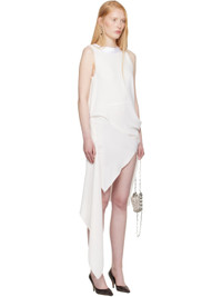 Viscose crepe minidress. · Asymmetrical and draped construction · Boatneck · Gathering at side seams · Slit at side seam · Low back Part of the exclusive SSENSE Bridal capsule. Supplier color: White Body: 100% viscose. Trim: 100% polyester. Made in United Kingdom 252678F052000