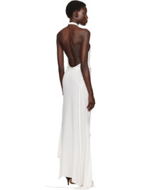 Viscose crepe maxi dress. Satin trim throughout. · Asymmetrical and paneled construction · Adjustable buttoned halter straps · Extended straps · Vented handkerchief hem Supplier color: White Body: 100% viscose. Trim: 100% polyester. Made in United Kingdom 251678F055003