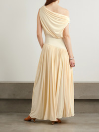 One-shoulder Asymmetric Draped Jersey-trimmed Stretch-bamboo Maxi Dress