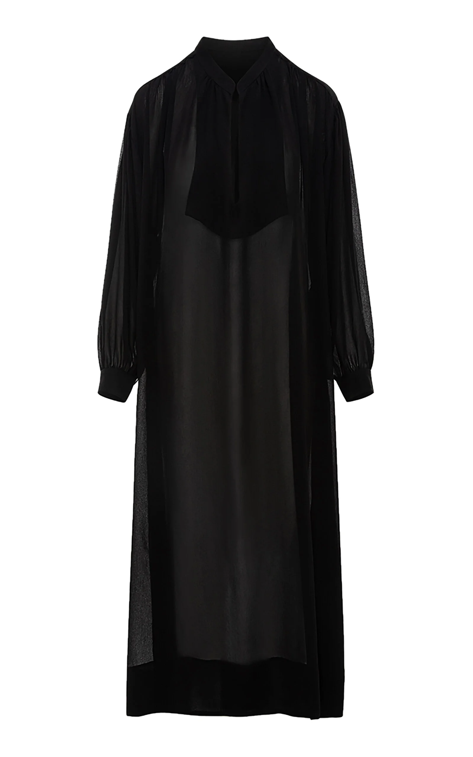 PRODUCT DETAILS - Pre-Fall '25 - Regular fit, deep V neckline with long sleeves, subtle A-line silhouette maxi dress - Unlined - Composition: 90% Triacetate 10% PL - Slip On - *Dry Clean Only - Made in China
