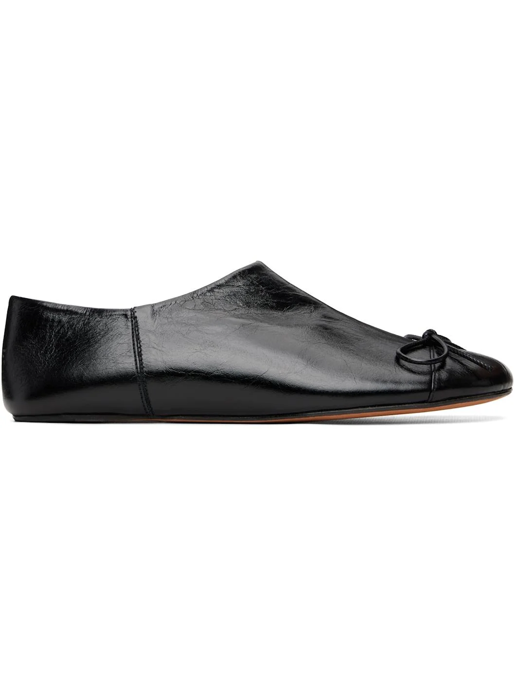 Crinkled leather ballerina flats. · Bow accent at vamp · Collapsible heel counter · Buffed leather lining · Leather sole with rubber injection Supplier color: Black Upper: leather. Sole: leather, rubber. Made in Spain 261526F118002