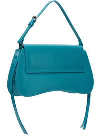 Polished leather top handle bag. · Adjustable carry handle · Silver-tone logo stamp at face · Extended trim at sides · Curved base · Magnetic flap · Patch pocket and D-ring at interior · H5.25" x W11" x D2" Supplier color: Blue Leather. Made in Spain 252526F048000