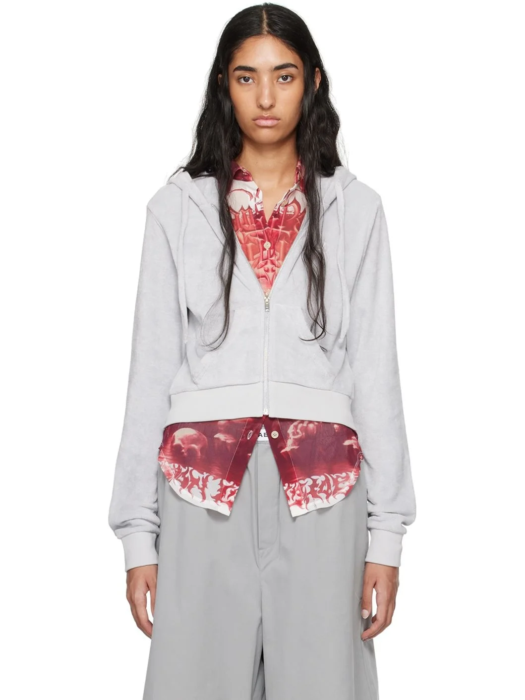 Organic cotton terrycloth hoodie. · Drawstring at hood · Zip closure · Logo embroidered at chest · Welt pockets · Rib knit cropped hem and cuffs Supplier color: Grey 100% organic cotton. Made in Portugal 242526F097000