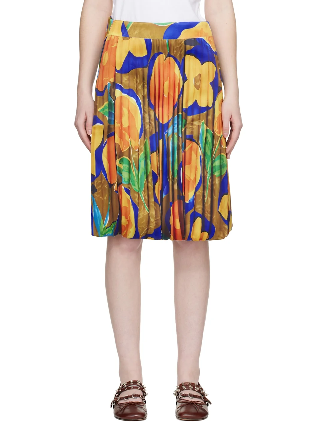 Cotton-blend twill midi skirt. · Pattern and trompe l'oeil pleats printed throughout · Scalloped edge at hem · Zip closure at side seam Supplier color: Printed 83% cotton, 17% polyester. Made in Spain 261526F092001