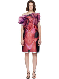 Double-faced polyester satin midi dress. Raw edges throughout. · Straight neck · Graphic-printed overlay at front · Zip closure at back Supplier color: Print 100% polyester. Made in Portugal 252526F054001