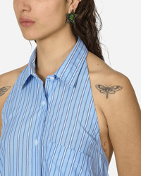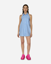ABRA Shirt Mini Dress White / Blue The new ABRA collection references to Japanese pop culture and video games colliding with the humorous banality of office stock imagery, while sculptural shapes bring elegance to the brand’s eccentric aesthetic. The Shirt Mini Dress features a striped pattern, classic collar, front button closure and scooped back. - 100% Cotton - Striped Pattern - Classic Collar - Button Closure - Chest Pocket - Scooped Back - Elasticated Trim - Style Code: CSMD1020 WHITE-BLUE SIZE & FIT Model is 5ft 8in/1.76m with 30"/78cm chest and wears size S.