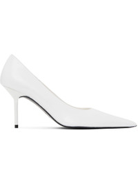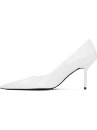 Polished leather heels in white. · Pointed toe · Logo embossed at padded leather footbed · Stiletto heel with rubber injection · Polished leather sole · Heel: H4" Supplier color: White Leather. Made in Spain 251526F122001