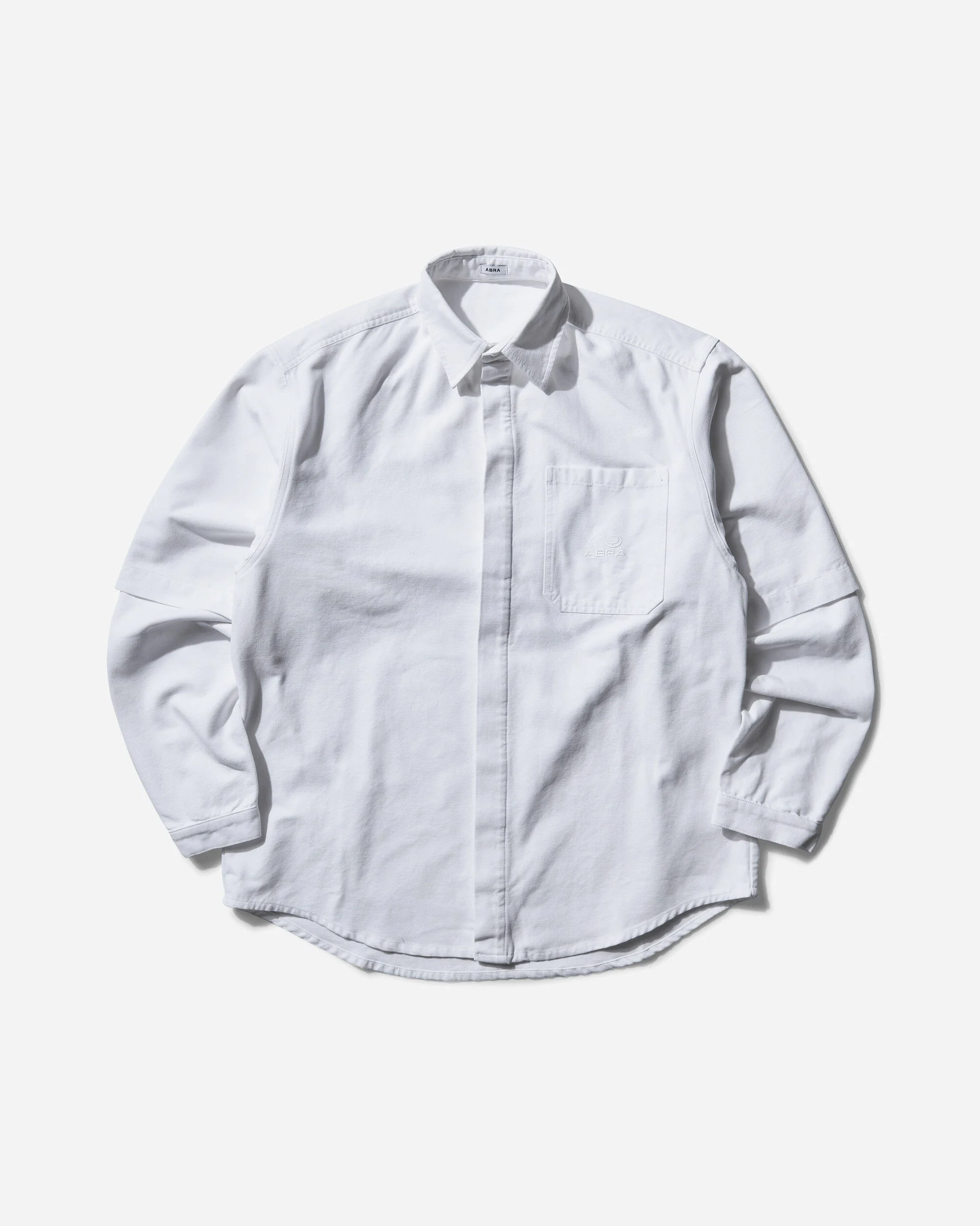 ABRA Double Shirt White ABRA comes back to once again defy the norms of beauty and fashion. Helmed by Abraham Ortuno Perez, the new collection was inspired by the women in this life. The new collection aimed to “Showcase the closet of a woman from the moment she wakes to the moment she goes to sleep,” according to a press statement. The designer created these pieces to pay homage to the little details that evoke nostalgia and make the everyday nuances of femininity and cosmetics beautiful. - 100% Cotton - Oversized Fit - Double-Layer Construction - Classic Collar - Concealed Button Closure - Chest Pocket - Embroidered Logo - Adjustable Cuffs - Curved Hem - Style Code: DS10 10