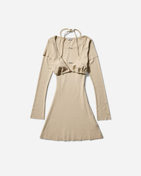 ABRA Overlayered Dress Beige From ABRA's Spring Summer collection, the Overlayered Dress is a set of two cotton jersey minidresses and includes self-tie bikini-style top. - 100% Cotton - Tight Fit - Overlayed Construction - Boatneck and Scoop Neck - Floral Appliques at Front - Raw Edges - Style Code: COD52 BEIGE