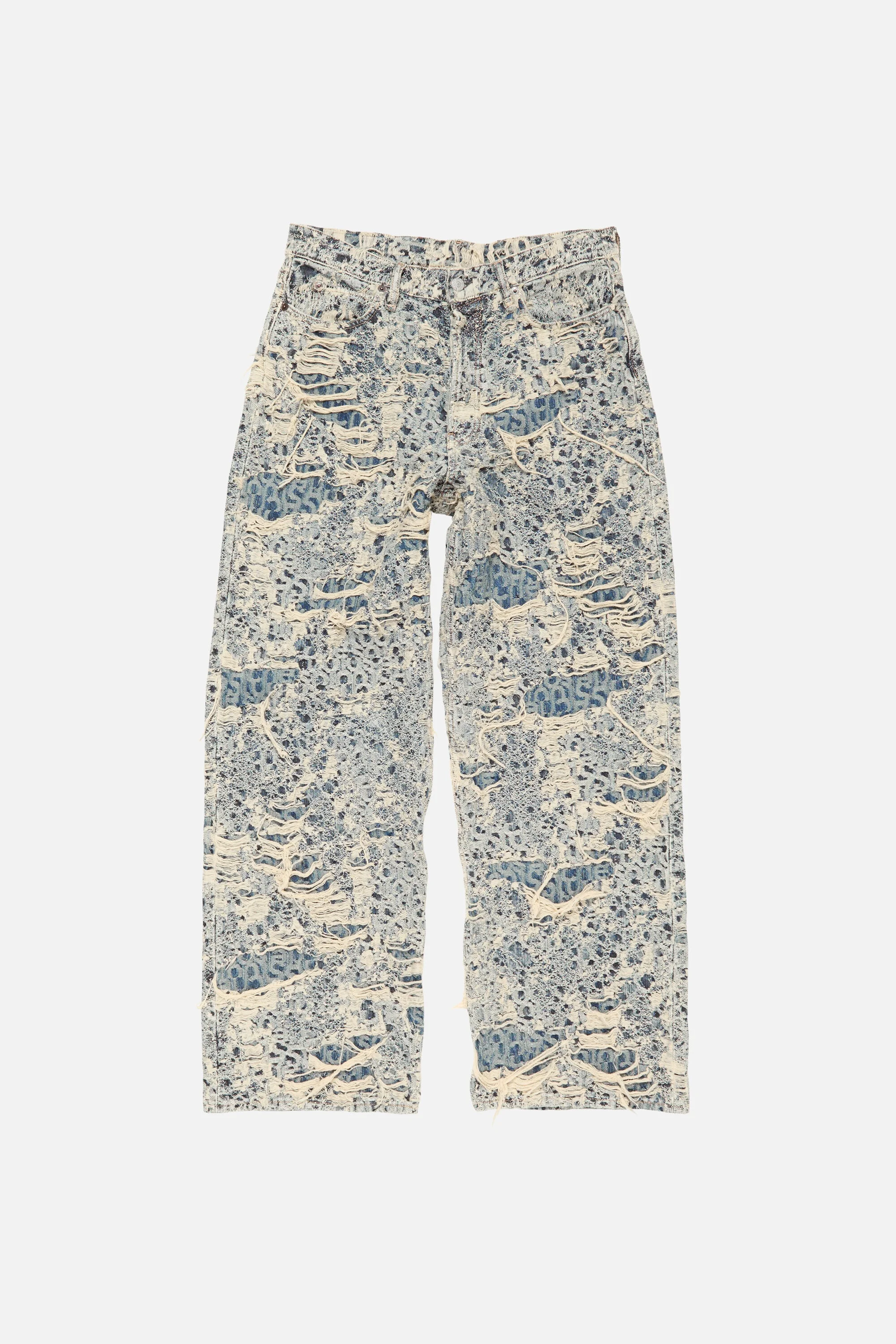 1981 jeans are cut to a baggy fit with a low waist, wide leg and long length. Crafted from non stretch denim with a distressed monogram animation. - Baggy fit - Low waist - Wide leg - Long length - Distressed monogram - Back leather logo patch - 5-Pocket construction - Button fly - Female model is 180 cm / 5'9" and wears a size Small, Regular corresponds to a size 36 and 27 denim - Male model is 188 cm / 6′2" and wears a size Small, Regular corresponds to a size 46 and 29 denim - Style ID: Acne Studios 1981 U Denim Distressed Monogram - Shell: 100% Organic cotton, Patch: 100% Cow leather