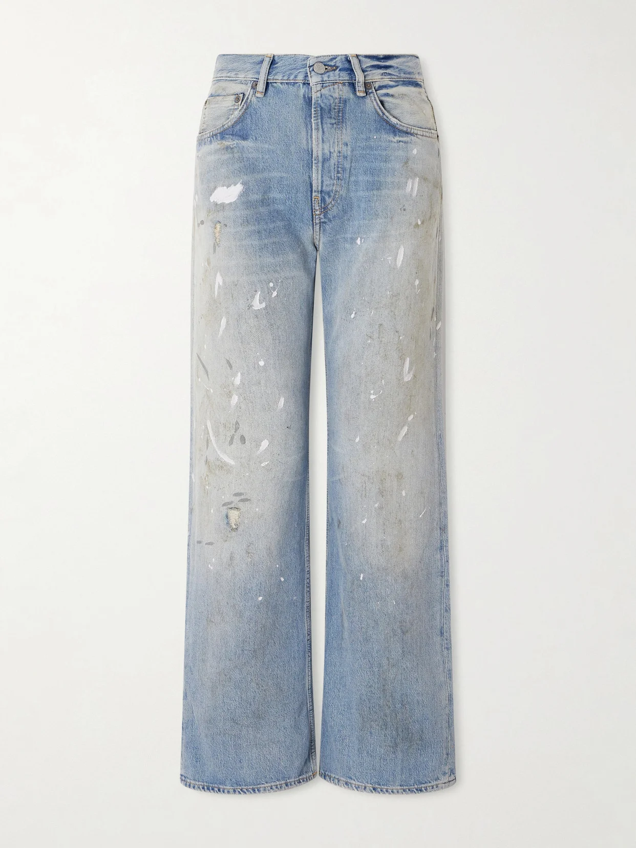 Jeans have been a fundamental part of Acne Studios since it was founded, so its selection is always exceptional. This straight-leg '2021' pair has been made in Italy from rigid light-blue denim using a blend of organic cotton and Lyocell and is heavily faded and distressed with paint splatters for a lived-in look. Lower-Impact Materials. This product is made using at least 50% lower-impact materials or ingredients. Find out more about our NET SUSTAIN criteria here.