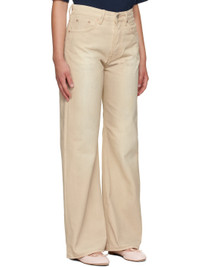 Coated non-stretch denim jeans. · Hand-applied discoloration throughout · Wide, straight-leg · Mid-rise · Belt loops · Five-pocket styling · Button fly · Leather logo patch at back waistband · Contrast stitching in tan Supplier color: Sand beige 100% cotton. Made in Italy 252129F069009