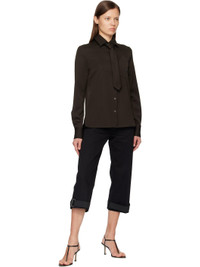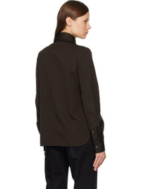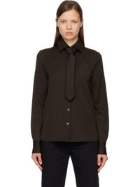 Wool twill shirt. · Spread collar · Removable tie at collar · Button closure · Mock pocket square at patch pocket · Shirttail hem · Buttoned barrel cuffs Supplier color: Brown Body: 100% wool. Lining: 50% acetate, 50% viscose. Made in Portugal 252129F109007