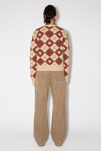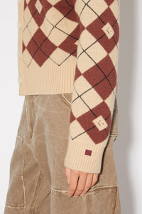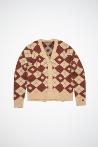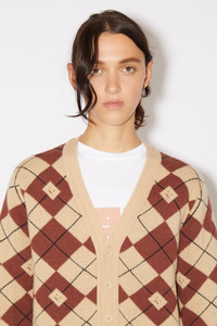 Argyle jacquard cardigan - Biscuit beige/deep red