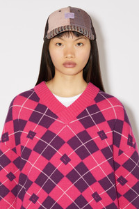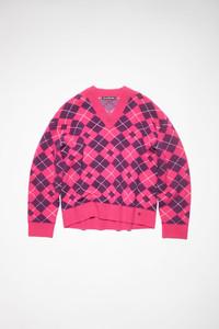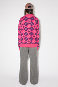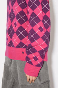 Argyle jacquard wool jumper - Bright pink/mid purple