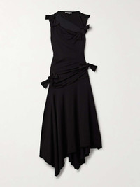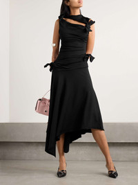 Acne Studios' dress is designed with artful knots - also seen on the label's signature handbags, the detail is inspired by Japanese obi sashes. It's cut on the bias from stretch-crepe that's gathered along the bodice and has a slashed neckline and floaty hem. Size & Fit - Fits true to size, take your normal size - Designed to be fitted at the bust and waist, slightly loose at the hip - Lightweight, stretchy fabric - Model is 175cm/ 5'9" and is wearing a size Small Model measurements: - Bust: 79cm/ 31” - Waist: 61cm/ 24” - Hip: 88cm/ 34.5” Details & Care - Black stretch-crepe - Concealed zip fastening along shoulder - 60% viscose, 32% cotton, 8% elastane; lining: 74% nylon, 26% elastane - Dry clean