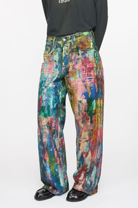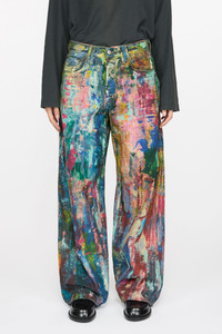 1981 fit jeans are cut to a baggy fit with a low waist, wide leg and long length. Detailed with a seasonal trompe l'oeil optical illusion print with a painted multicoloured brush strokes effect. Made from canvas cotton with a leather logo patch at the back. - Baggy fit - Low waist - Wide leg - Long length - 5-pocket construction - Leather logo patch - Model is 178 cm / 5'11 and wears a size 36 - Style ID: FN-WN-TROU001414 - Shell: 100% Cotton