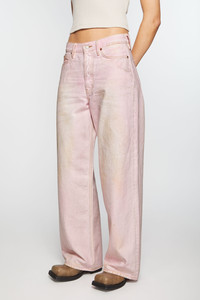 1981 fit jeans are cut to a baggy fit with a low waist, wide leg and long length. Made from non stretch denim in a pale pink wash and detailed with a leather logo patch. - Baggy fit - Low waist - Wide leg - Long length - 5-pocket construction - Leather logo patch - Model is 180cm/ 5'11 and wears a size 36 - Style ID: Acne Studios 1981F FN Traffic Pink - Shell: 100% Cotton, Patch: 100% Cow leather