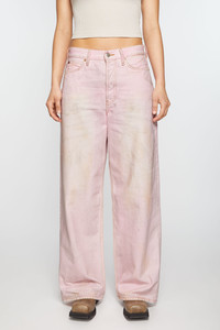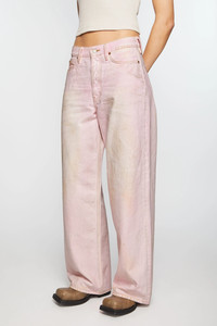 1981 jeans are cut to a baggy fit with a low waist, wide leg and long length. Crafted from non-stretch denim with a handmade coated finish. - Baggy fit - Low waist - Wide leg - Long length - Coated finish - Due to the technique, each garment may differ slightly - 5-pocket construction - Button fly - Model is 187 cm / 6'2 and wears a size 36 - Model is 177 cm / 5'10 and wears a size 46 - Style ID: Acne Studios 1981 U Traffic Pink - Shell: 80% Cotton, 20% Recycled cotton, Patch: 100% Cow leather